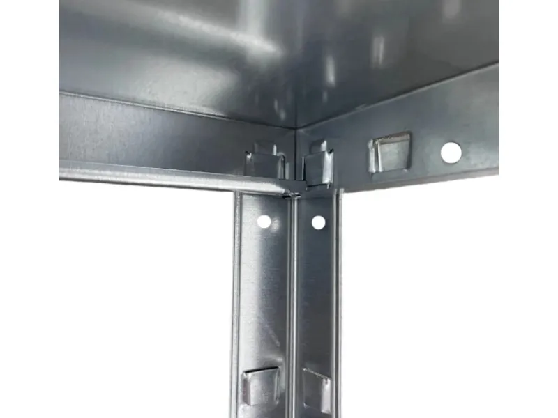 Vorhandene Verstellraster ermöglichen ein flexibles und müheloses Einstecken der Fachböden auf die gewünschte Ebene. Das Regal ist modular erweiterbar durch ein zusätzliches Anbauregal.