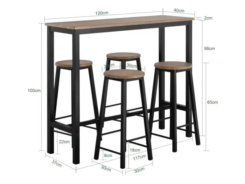 Bartisch und Barhocker aus schwarz pulverbeschichtetem Stahlrahmen mit MDF(E1)-Platten, perfekt für Esszimmer, Wohnzimmer, Küche oder kleine Wohnungen.