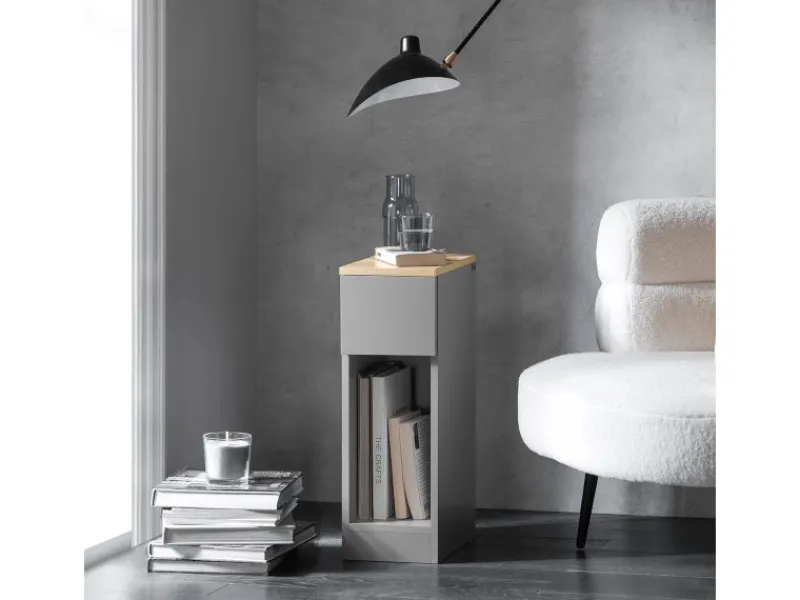1 Schublade und 1 offenes Fach helfen Ihnen dabei, die Dinge gut zu organisieren.