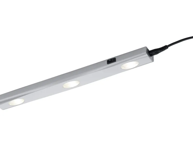 Die LED-Unterbauleuchte ist aus titanfarbenem Kunststoff gefertigt und mit einem Ein-/Ausschalter ausgestattet. Sie ist vielseitig einsetzbar und kann sowohl senkrecht, als auch waagerecht befestigt werden. Durch ihre geringe Breite von nur 4 cm eignet sich die Leuchte ideal für den Einsatz an der Wand oder in Küchen und Regalen. Die Leuchte ist mit 3 x 1 W fest verbauten SMD LEDs ausgestattet. Die LEDs haben eine lange Lebensdauer von 30.000 Stunden und strahlen in Warmweiß mit einer Farbtemperatur von 3.000 K.
