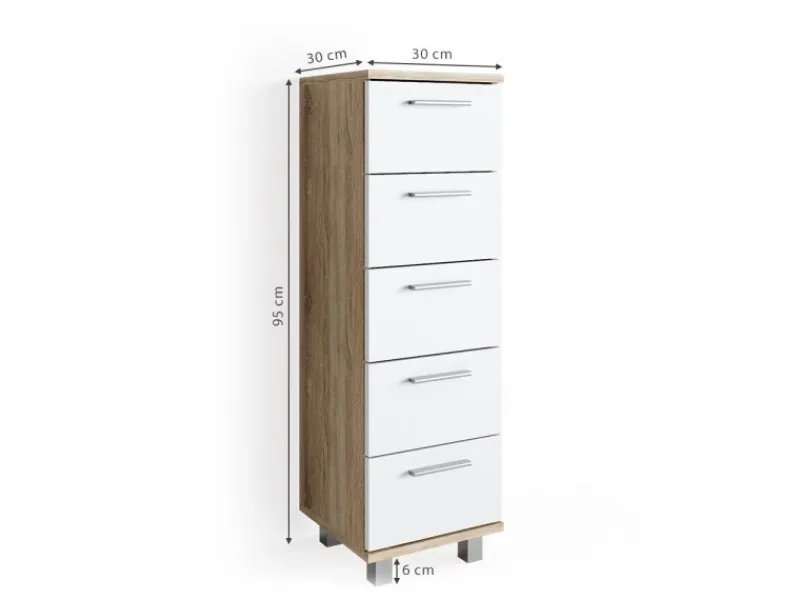 Das Badezimmermöbel hat eine Breite von 30 eine Höhe von 95 eine Tiefe von 30