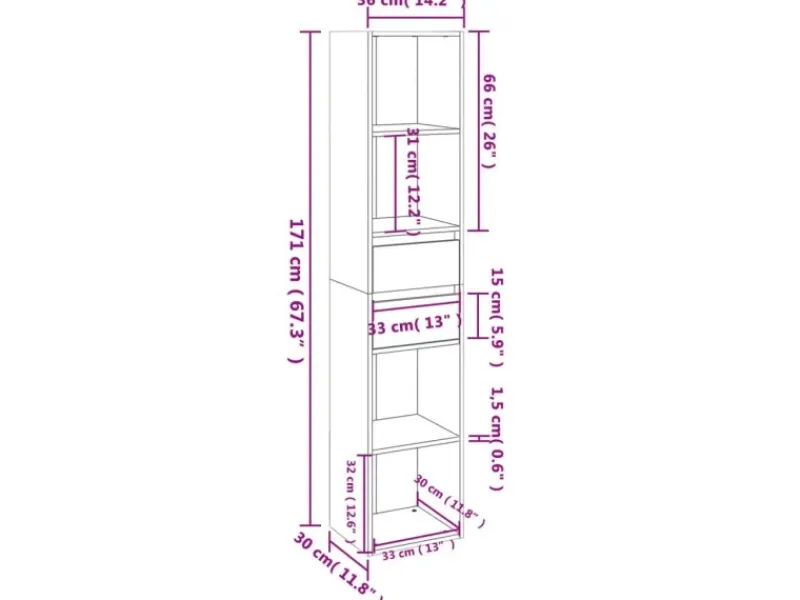 Abmessungen: 36 x 30 x 171 cm (B x T x H)