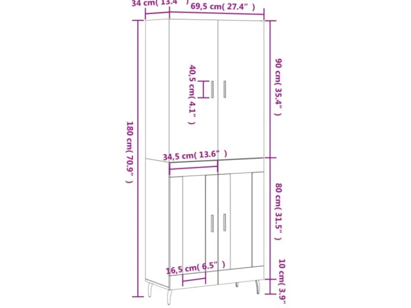Gesamtabmessungen: 69,5 x 34 x 180 cm (B x T x H)