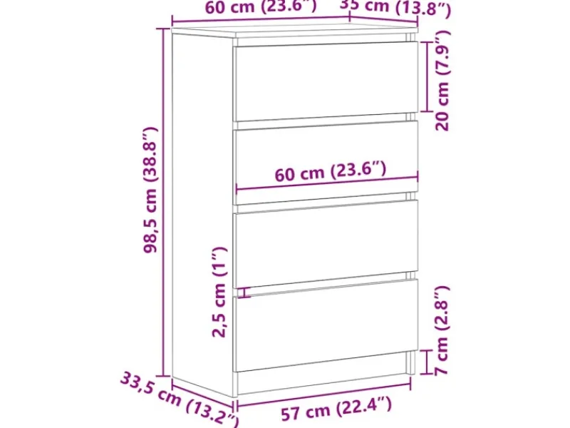 Abmessungen: 60 x 35 x 98,5 cm (B x T x H)