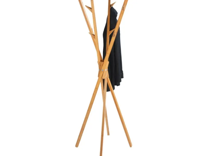 Mit ihren acht Haken bietet die Garderobe viel Platz für Kleidung und Accessoires und hält diese stets dekorativ griffbereit. Der hochwertige Kleiderständer ist einzigartig durch das besondere Entfalten seiner vier Arme. Bei Nichtgebrauch ist er leicht und platzsparend zusammenklappbar (180 x 25 x 25 cm) und zu verstauen.