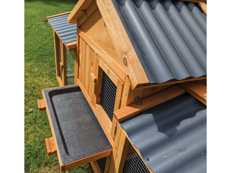 – Großzügige Maße: 200x53x87 cm (Stall), 190x44x60 cm (Auslauf)
