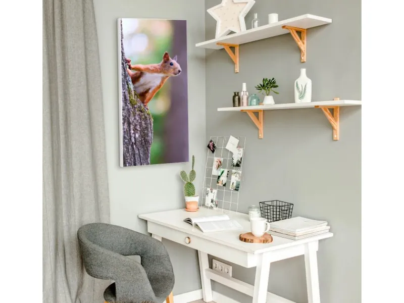 Das Motiv Eichhörnchen wird mit einem Schutzlaminat überzogen und ist lösungsmittelfrei.