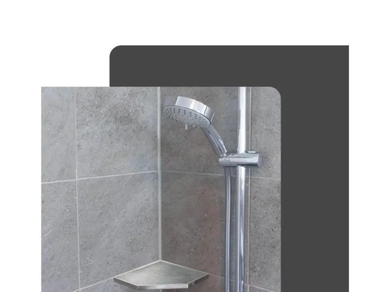 – DuschablageHinweis: In die offene Fläche der Duschablage lässt sich eine nach Maß zugeschnittene Fliese einsetzen