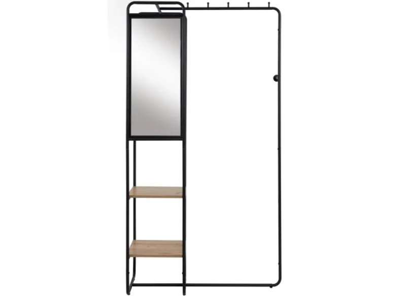 Mit Spiegel (34 x 72 cm), 5 Kleiderhaken, Kleiderstange und Ablageböden in Eiche Dekor