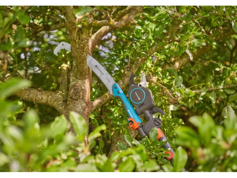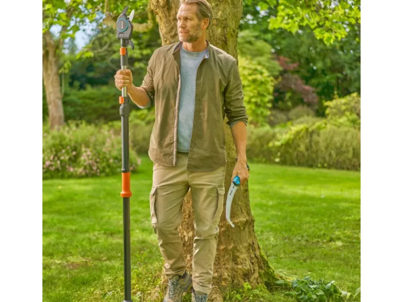 Mit präzisionsgeschliffenen Klingen aus Qualitätsstahl und dem innenliegenden Getriebe aus Stahl bietet der Gardena StarCut Pro L müheloses Schneiden, während der kompakte Schneidkopf problemlos Zugang zum Astansatz gibt.