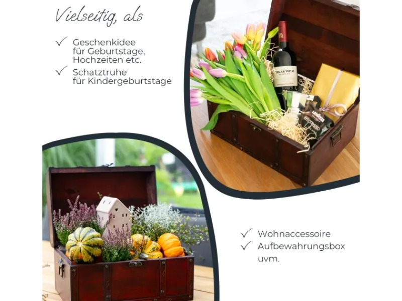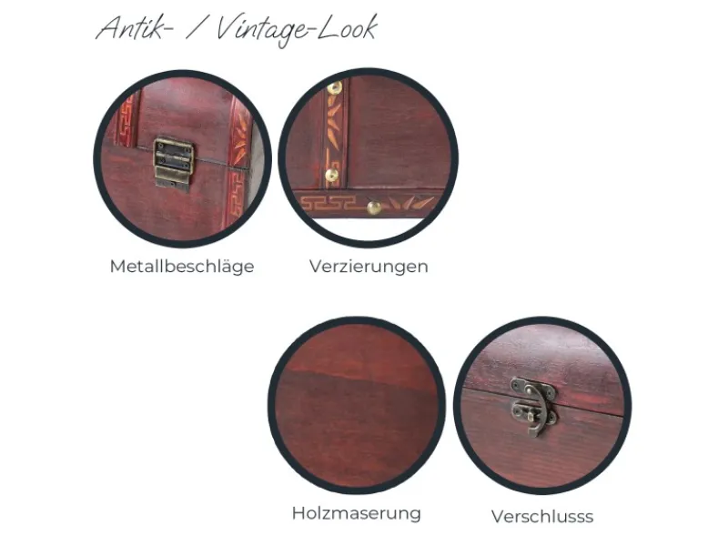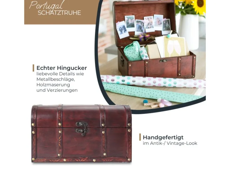 HANDGEFERTIGTE ELEGANZ – Individuelle Holzmaserung und Metallbeschläge, jede Kiste ist einzigartig
