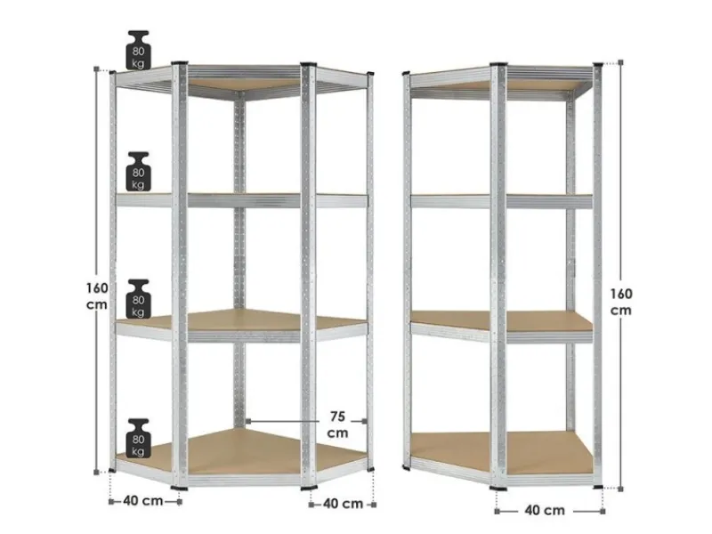 – Stabiles Eckregal aus verzinktem Metall