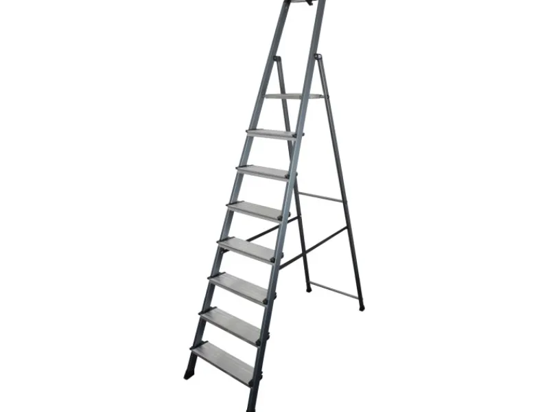 Der hohe Sicherheits-Bügel, die profilierte Alu-Sicherheitsplattform, die profilierten und 12,5 cm tiefen XXL-Stufen sowie die ebenfalls profilierten und bodenschonenden Fußkappen sorgen für ein Mehr an Sicherheit im täglichen Einsatz.
