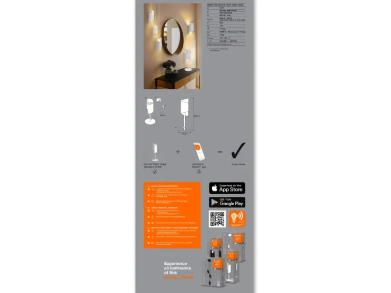Steuerbar über LEDVANCE SMART+ WiFi App (mit mindestens Android 4.4 oder iOS 10.0) und über Google Assistant oder Amazon Alexa möglich