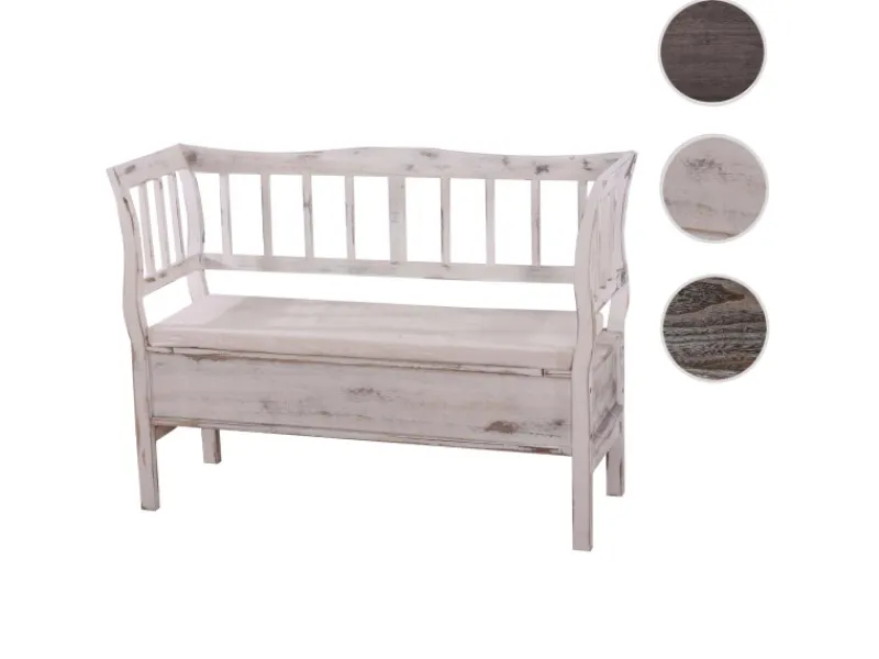 – Diese schicke Holzbank im Shabby-Look lädt nicht nur zum Entspannen ein. Dank des klappbaren Deckels, bietet diese Bank ebenso genügend Stauraum für Ihre alltäglichen Gegenstände und lässt somit keine Wünsche offen.
