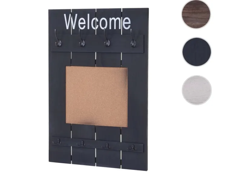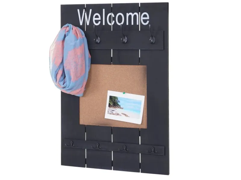Sie wünschen von einer Wand mehr als nur Ihr Haus zusammen zu halten? Mit dieser Wandgarderobe können Sie jede Wand praktisch und dekorativ aufwerten! Durch den Shabby-Look wirkt jeder Flur, jede Diele oder auch das Schlafzimmer viel wohnlicher. Acht Haken machen es möglich, Ihre Kleidung schnell greifbar und übersichtlich platzsparend unterzubringen. An der praktischen Pinnwand können Sie auch gleich noch Ihre wichtigsten Notizen befestigen, damit Sie keinen Termin mehr vergessen.
