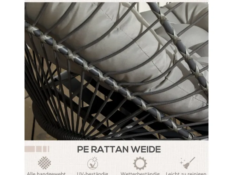 ● Der Stahlrahmen mit Beschichtung und das PE-Rattangeflechte sind stark genug, um allen Wetterbedingungen zu widerstehen