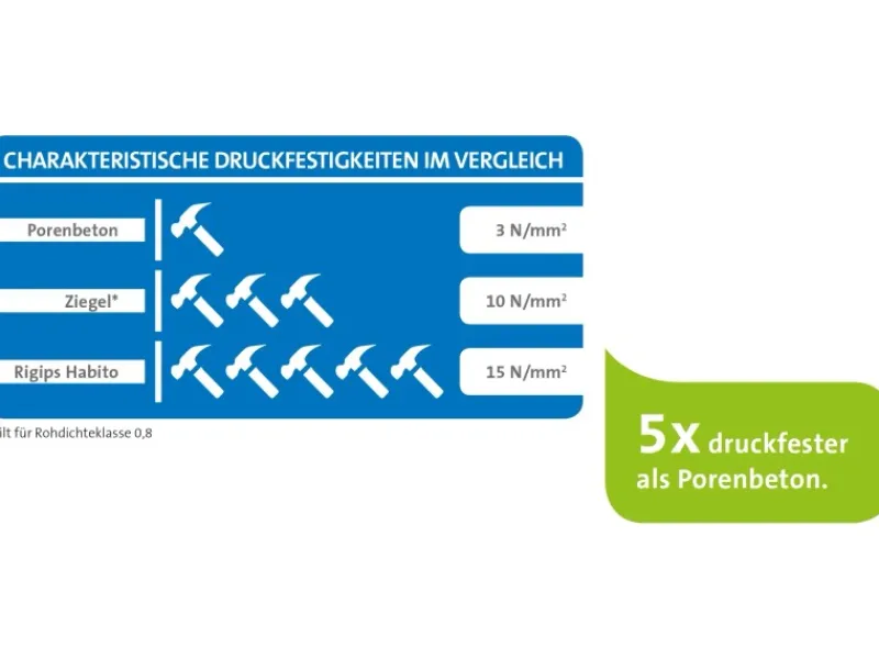 Rigips Habito spart im Vergleich zu konventionell gebauten Wänden z. B. aus Ziegelmauerwerk bis zu 25 % Wandstärke ein, was sich durch mehr Grundfläche bemerkbar macht
