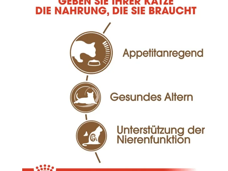 Royal Canin Senior Ageing 12und ist ideal für Katzen ab einem Alter von 12 Jahren geeignet. Die Katzennahrung ist speziell auf die besonderen Bedürfnisse bei der Ernährung älterer Katzen abgestimmt. In den Jahren der normalen Alterungsphase benötigen Senior-Katzen eine Nahrung, die ganz bestimmte Nährstoffe zur Aufrechterhaltung ihrer Gesundheit enthält. Aus diesem Grund beinhaltet Royal Canin Senior Ageing 12und einen Antioxidanzienkomplex, der Katzen während ihres gesamten Alterungsprozesses unterstützt. Dank eines moderaten Phosphorgehalts wird zudem eine gesunde Nierenfunktion unterstützt, was insbesondere bei älteren Katzen ein sehr wichtiger Aspekt ist.