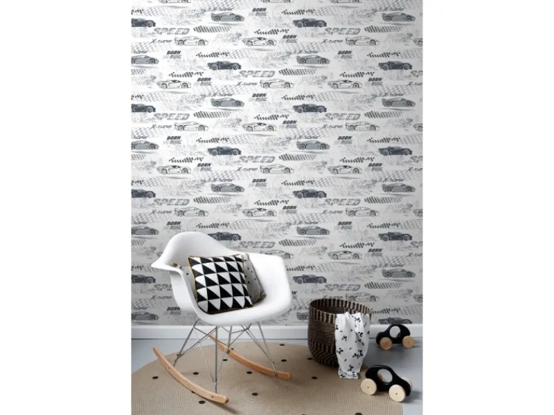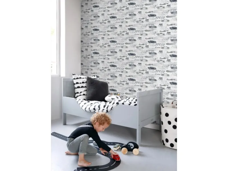 Diese fröhliche Tapete mit Rennwagen in Schwarz-Weiß verwandelt jedes Kinderzimmer in ein wahres Abenteuerland. Kombiniert mit hellen Farben und natürlichen Materialien, entsteht eine angenehme und freundliche Atmosphäre, die zum Spielen, Toben und Lachen einlädt.Maße, Rapport und Musterversatz Die Maße dieser Tapete sind 50 x 900 cm (Breite x Länge). Der Rapport ist 50/25 (versetzter Ansatz). Das heißt, dass das Motiv sich alle 50 cm wiederholt und das Muster der nächsten Tapetenbahnen jeweils um 25 cm verschoben werden muss.Tapezieren Das Anbringen dieser Vliestapete ist einfach und unkompliziert: nachdem der Vlies-Kleister direkt auf die Wand aufgebracht wurde, kann die Tapete angesetzt und anschließend glattgestrichen werden. Eventuelle Überstande können mit einem Cuttermesser entfernt werden. Beim Tapezieren wird kein Tapeziertisch benötigt und die Tapete ist auch nach Jahren restlos trocken abziehbar. Für das beste Tapezierergebnis empfiehlt Sanders & Sanders den professionellen Wallpro PRO-301 Tapetenkleister. Vorbereitungstipp: Verhindere Probleme mit der Haftung deines Tapeten, indem du vorher testest, ob deine Wandoberfläche stark saugend ist. Nimm dazu einen feuchten Schwamm und befeuchte einen kleinen Teil der Wand. Wenn der feuchte Bereich innerhalb weniger Sekunden verschwindet, ist die Wand sehr saugfähig. In diesem Fall empfehlen wir, ein Grundiermittel zu verwenden, um die Saugfähigkeit zu verringern. Sanders & Sanders empfiehlt hierfür die WALL PRO-401 Tapetenprimer.Sofort startklar! Am einfachsten ist es, direkt auch der benötigte Tapetenkleister und ein Wallpro PRO-933 Tapezierset zu bestellen. Dieses Tapezierset enthält alle Tapezierwerkzeuge, die beim Tapezieren von Vliestapeten benötigt werden. Diese Artikel können über das Suchfenster auf der Amazon Seite schnell gefunden und bestellt werden. So wird das Tapezieren zum Kinderspiel!