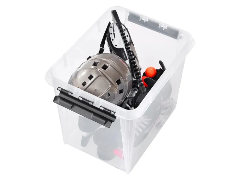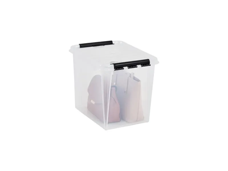 Diese hohe 52-Liter-Box ist ideal zur Aufbewahrung von sperrigen Gegenständen wie Handtüchern, Decken, Bettwäsche und Kissen sowie saisonaler Kleidung. Das transparente Material erleichtert den Blick auf den Inhalt. Stabile Kunststoff-Clips sorgen für einen sicheren Verschluss des Deckels.