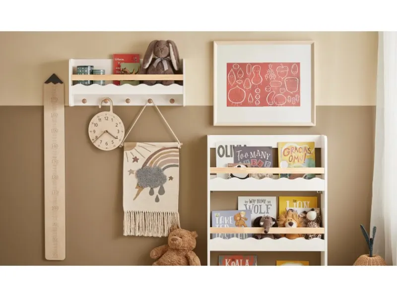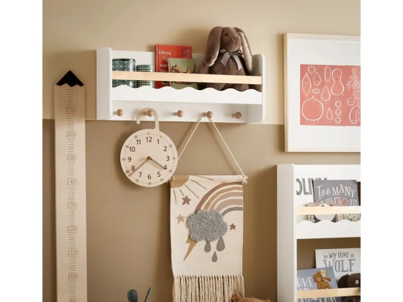 Sie können dieser Kinder-Wandgarderobe auch mit dem Kinder Bücherregal (KMB77-W) als Set kombinieren.