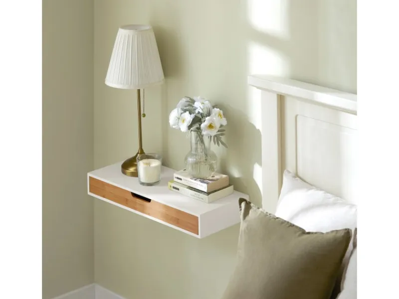 Das Regalbord mit Schublade kann als Wandregal oder -schublade verwendet werden.
