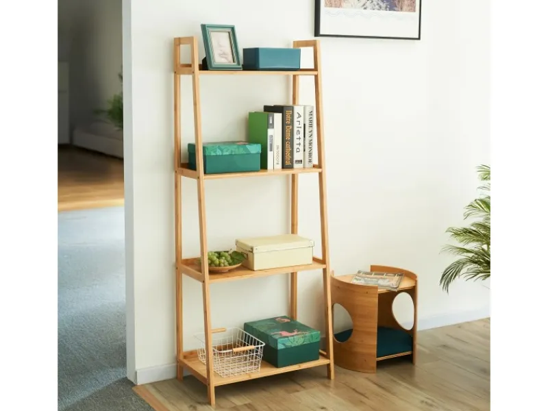 Zudem ist das Leiterregal aus Bambusholz gefertigt, welches sehr robust und pflegeleicht ist. Dank der durchsichtigen Lackierung, die es vor Feuchtigkeit schützt, kann das Leiterregal einfach mit einem feuchten Baumwolltuch abgewischt werden.