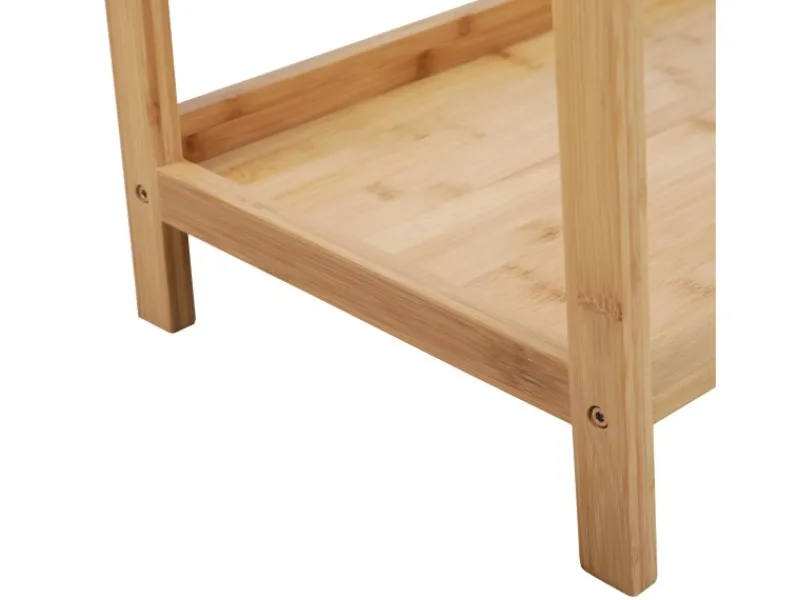 Mit der nach oben hin immer schmaler werdender Form, kann das Bambusgestell platzsparend an der Wand montiert werden.