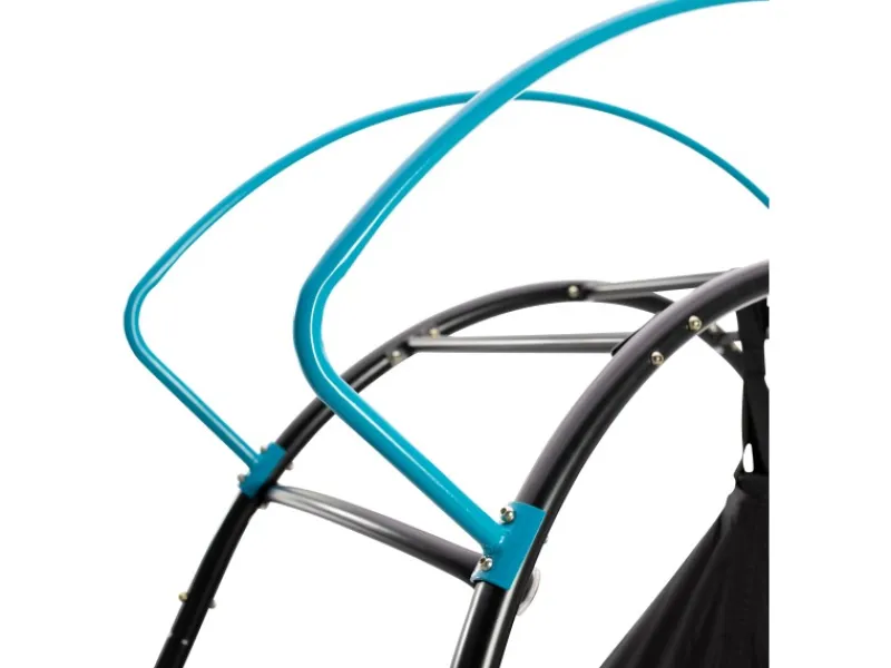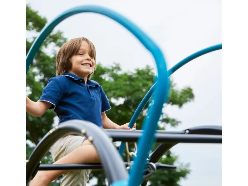 Um den Hängesessel ist ein Klettergerüst verbaut, welches den Überstieg über das UFO ermöglicht und die Motorik fördert.