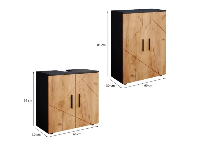 MAßE: Badmöbel-Kombination hat 2 Teile und die detaillierten Größen sind auf den Fotos angegeben.