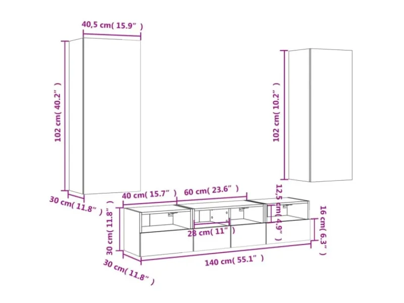 2 x TV-Wandschrank: 40 x 30 x 30 cm (B x T x H)