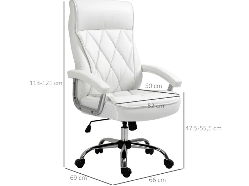Dieser Stuhl ist kein gewöhnlicher Bürostuhl, sondern erhöht Ihr Sitzerlebnis mit einem hochwertigen faden genähten Rautenmuster, das ein raffiniertes Detail bietet und eine zusätzliche Dimension des Komforts hinzufügt. Dieser Hochlehner-Bürostuhl von Vinsetto bietet alles, was Sie in einem Arbeitsstuhl benötigen, einschließlich einer Wipp Funktion, 360°-Drehung und verstellbarem Sitz, sowie bequemen Polstern. Unser Chefsessel bringt überragenden Komfort und einen modernen Look in Ihr Heimbüro.