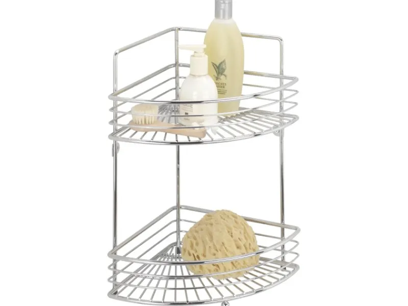 Die moderne, platzsparende Ecklösung bietet auf 2 Etagen viel Stauraum für alle Wasch-, Dusch- oder Pflegeutensilien und hält diese stets dekorativ griffbereit. Das praktische Regal eignet sich ideal zur Montage im Dusch- und Badewannenbereich.