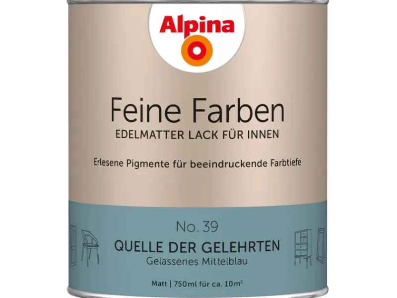 Outlet Alpina Feine Farben Lack No. 39 Quelle der Gelehrten® Blau edelmatt 750 ml Gelassenes Mittelblau