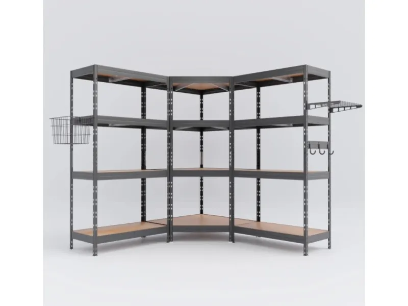 Das Eck Metall-Schwerlast-Steckregal Rivet ist eine Revolution für Ihre Ecken. Es nutzt die max. Raumfläche, stellt so mehr Lagerkapazitäten zur Verfügung und ist deshalb bestens geeignet für den Einsatz in der Garage, im Keller oder anderen Räumen. Die zwei Unterzüge pro Boden, verleihen dem Metallregal eine überdurchschnittliche. Das Eck Schwerlastregal gibt Ihnen die Möglichkeit selbst die Ecken als Stauraum auszunutzen und durch seinen 135° Winkel kommt man leicht an die gewünschten Gegenstände wieder ran.