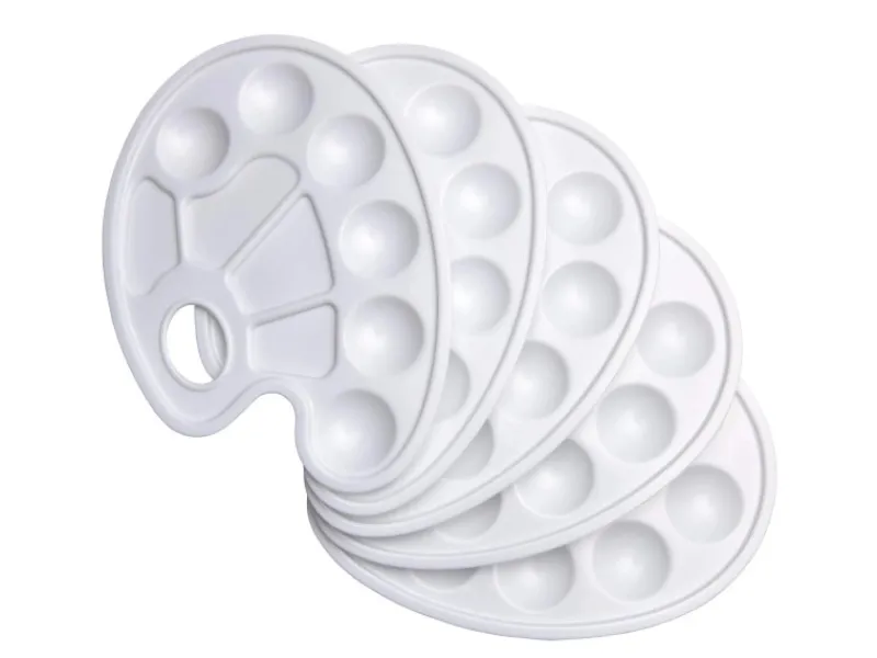 Die ovale Mischpalette mit Daumeneingriff kann für alle Naßmaltechniken verwendet werden und besteht aus 6 runden und 4 großen Mischfeldern. Die Palette aus Kunststoff ist sowohl für Einsteiger, als auch für Fortgeschrittene geeignet.