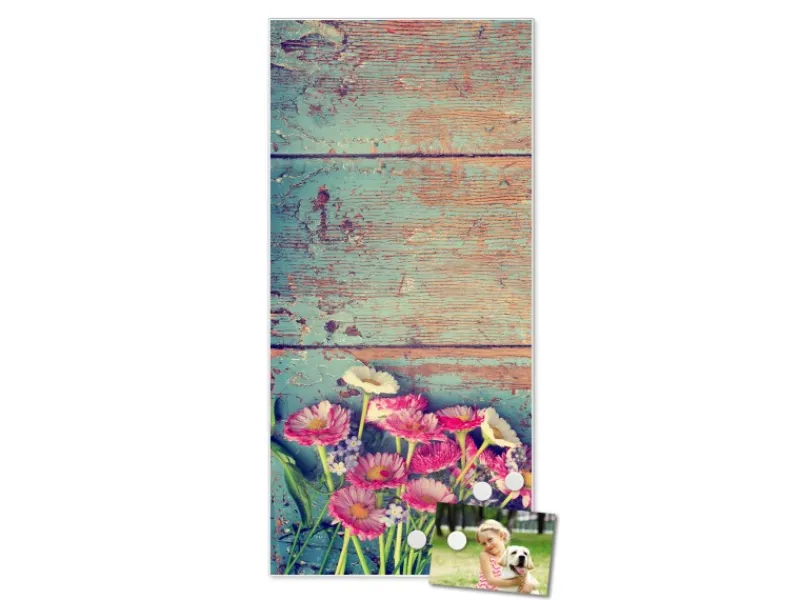 Die Magnet Pinnwand besteht aus weiß lackiertem Stahl in der Größe 37 x 78cm. Die aufgebrachte Motivfolie ist mit einem Schutzlaminat überzogen, wodurch sie UV-Resistent und stoßfest ist.