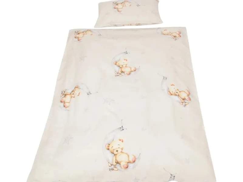 LIEFERUMFANG – Bettwäscheset im Motiv Sterne, Sterne grau, Bärchen Blau oder Bärchen Weiß bestehend aus einem Bettbezug in 100x135cm und einem Kissenbezug in 40x60cm. Die Kinder Bettwäsche passt nicht nur ins Babybettchen, sondern ist auch Ideal für den Kinderwagen, Wiege das Beistellbett oder den Stubenwagen geeignet.