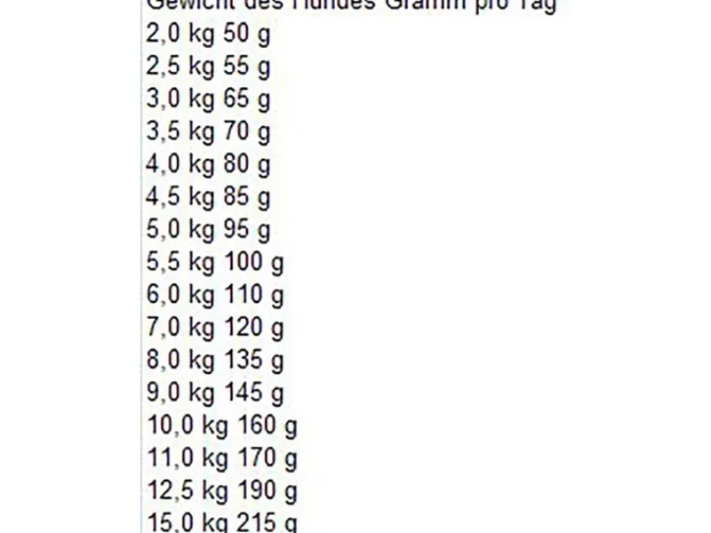 Idealgewicht Deines Hundes Gramm pro Tag