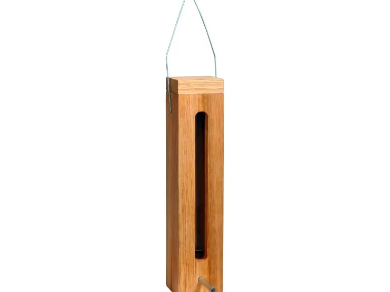 Der Futterspender wird aus massivem, geöltem Stieleichenholz gefertigt und besticht durch eine lange Lebensdauer. Des Weiteren hat Eichenholz von Natur aus eine optisch ansprechend gleichmäßige Maserung in einem intensiven Holzfarbton. Zudem ist der Futterspender dank seiner Wetterbeständigkeit ideal für die Ganzjahresfütterung geeignet. Darüber hinaus ist in dem Futterspender ein Futtersilo aus UV-beständigem Acrylglas integriert, welche das Futter vor Verunreinigungen und Sonneneinstrahlung schützt. Außerdem ist der Futterstand auf einem Blick ersichtlich und das Futtersilo kann dank des abnehmbaren Deckels kinderleicht befüllt werden. Mit Hilfe des praktischen Metallbügels kann der Vogelfutterspender an den verschiedensten Orten im Garten oder auf dem Balkon aufgehängt werden.