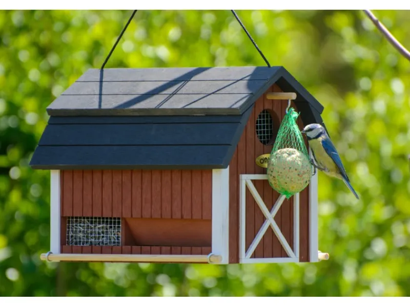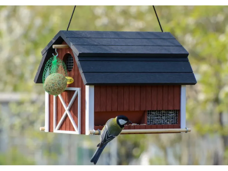 Das Silo ist durch das abnehmbare Dach erreichbar und ist in zwei separate Kammern aufgeteilt, die mit Körnerfutter, sowie mit Nüssen und Sonnenblumenkernen befüllt werden können. Zusammen mit dem Haken für Meisenknödel ist so eine abwechslungsreiche Fütterung möglich, die viele einheimische Wildvögel in Ihren Garten locken wird. Zwei große Anflugstangen an den Seiten bieten dabei jede Menge Halt für die hungrigen Gäste.