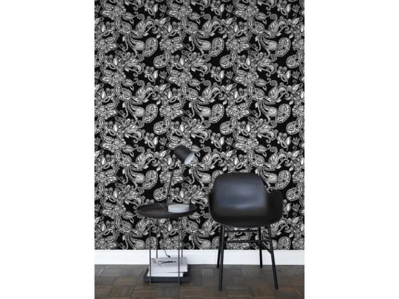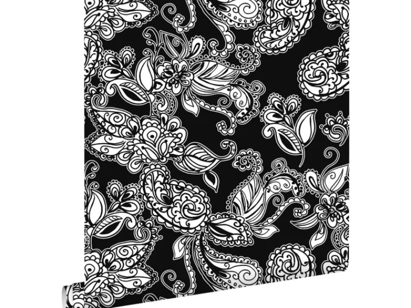 Outlet ESTAhome Tapete Funky Blumen Und Paisleys Schwarz Und Weiß 53 Cm X 1005 Cm 136844