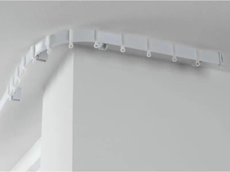 Die Gardinia Vorhangschiene ist aus Kunststoff gefertigt und eine moderne Alternative zu gewöhnlichen Gardinenstangen. Sie ist flexibel einsetzbar und kann an der Decke oder der Wand montiert werden. Die Schiene kann mit der Hand gebogen werden und lässt sich an Erkerfenstern, in Wohnmobilen oder als Raumteiler verwenden.