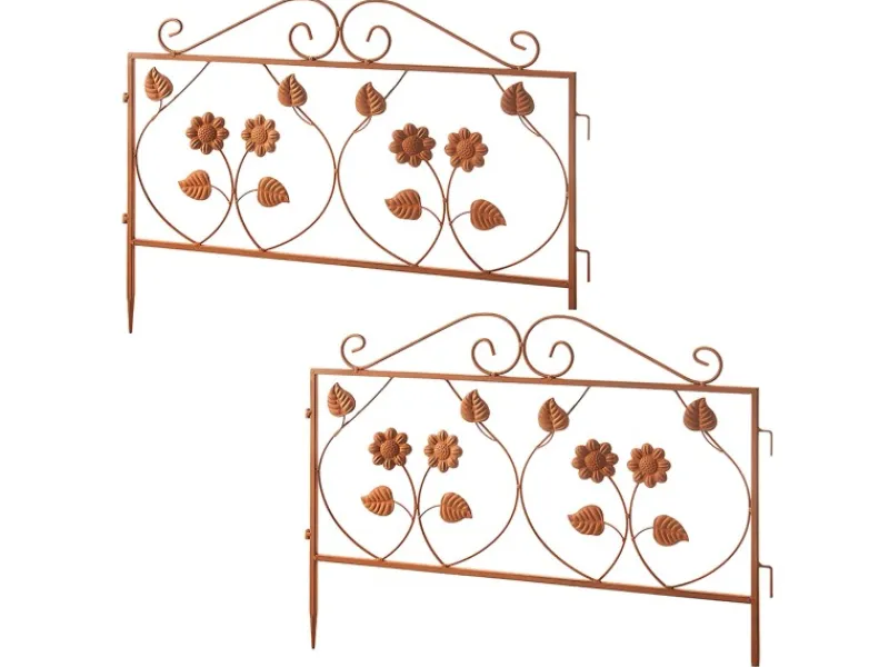 2er Set Beetzaun Metall Rostoptik mit Blumenmotiv als stilvolle Gartengrenze