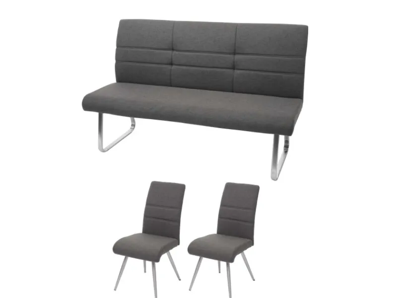 – Dieses moderne Set aus zwei Stühlen und einer Sitzbank überzeugt dank der breiten und gepolsterten Sitz- und Rückenflächen mit seinem hohen Sitzkomfort. Egal ob Esszimmer, Wohnzimmer oder Küche – diese Garnitur bringt Gemütlichkeit in all Ihre Räumlichkeiten.
