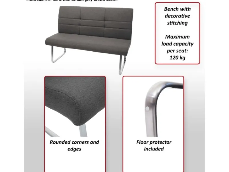 – Die Ziernähte auf den Rückenlehnen verleihen diesen Möbelstücken das gewisse Etwas. Abgerundet wird das ganze Set durch die Füße aus Edelstahl, die für einen stabilen Stand sorgen und den Polsterstuhl sowie die Küchenbank zu einem echten Hingucker machen.