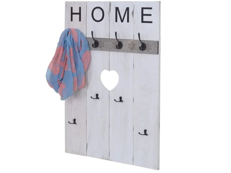 – Mit dieser Garderobe können Sie jede Wand praktisch und dekorativ aufwerten! Durch den Shabby-Look wirkt jeder Flur, oder das Schlafzimmer viel wohnlicher. Acht Haken machen es möglich, Ihre Kleidung schnell greifbar und übersichtlich unterzubringen.