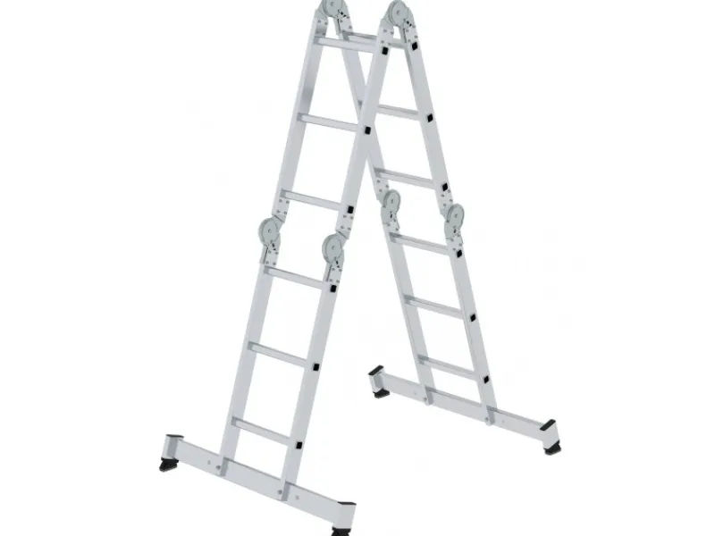 Vielzweckleiter mit 0,85m breiter Nivello-Traverse und beidseitig rutschsicheren nivello-Leiterschuhen für extra sicheren Stand und hohe Arbeitssicherheit.