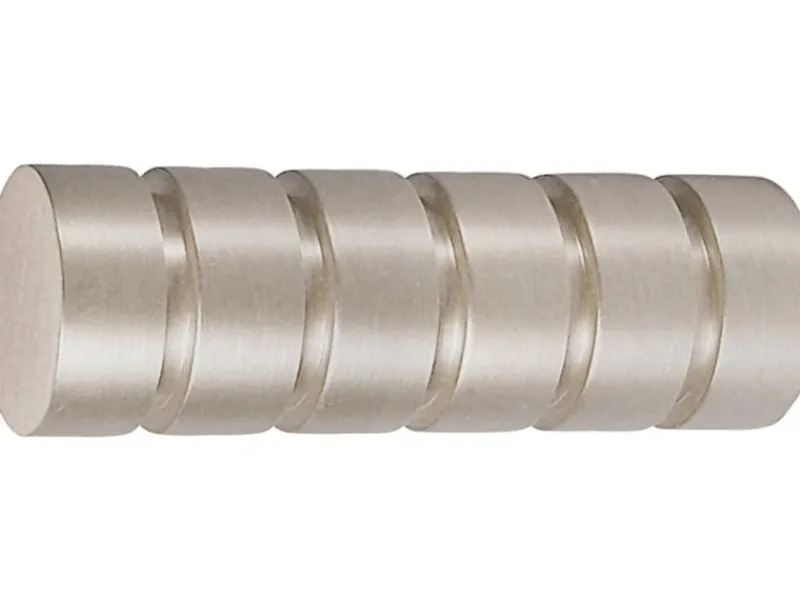 Das mydeco Gardinenstangen-Endstück Rillcube in Edelstahl besticht durch sein originelles aber dennoch stillvolles Design. Der Endknopf ist aus robustem Metall hergestellt und zeichnet sich durch seine Rillen-Optik und hochwertige Verarbeitung aus. Er lässt sich einfach montieren und ist für Vorhangstangen mit einem Durchmesser von 2 cm konzipiert.